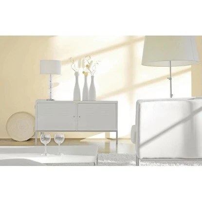 Alpina Farbrezepte Sanftes Cashmere ist ein heller Creme-Ton, der als Flächenton eine freundliche Atmosphäre schafft. Er lässt sich aber auch nach Wunsch mit nahezu allen Akzent- und Begleittönen kombinieren. Sein sanfter, weicher Charakter wird besonders in Kombination mit den Farbtönen der Farbrezepte einfach lebendig und einfach geborgen betont.