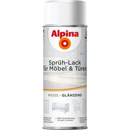 Alpina Sprüh-Lack für Möbel & Türen mit Grundierung ermöglicht hochwertige Neu- und Renovierungsanstriche, die extrem kratzfest und widerstandsfähig sind – ideal für z. B. Tische, Stühle, Kommoden, Regale und Schränke sowie Türen im Innenbereich. Die hochwertige Rezeptur eignet sich für eine Vielzahl an Oberflächen, z.B. aus Metall, Holz, Glas oder Keramik. Darüber hinaus überzeugt der Lack mit seiner hohen Deckkraft und der leichten Anwendung.