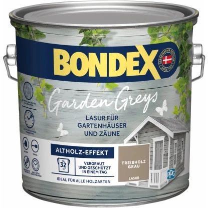 Die Bondex Garden Greys Lasur schützt und pflegt neue und alte Hölzer im Außenbereich. Sie macht das Holz wetterfest und wasserabweisend. Die Holzflächen erhalten durch die Lasur einen dekorativen Altholz-Effekt und eine gleichmäßig vergraute Patina.