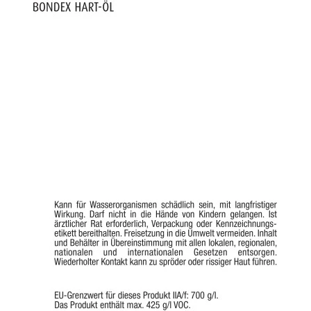 Das lösemittelhaltige Bondex Hart-Öl ist geeignet für stark strapazierte und unbehandelte Holzoberflächen im Innenbereich. Die Verarbeitung erfolgt mit Hilfe eines Pinsels oder Lappens.