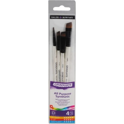 Das Daler-Rowney Graduate Multitechnik-Pinsel Synthetik 4er-Set besteht aus einer Auswahl von 4 synthetischen Graduate-Pinseln mit kurzem Stiel, die für verschiedene Maltechniken ideal geeignet sind. Das Graduate-Pinselsortiment umfasst Pinsel für alle Arten von Fine-Art-Farben. Die synthetischen Fasern der Pinsel mit kurzem Stiel bieten eine hervorragende Formbeständigkeit und eignen sich sowohl für das Malen mit Acrylfarben als auch für Aquarell- und Ölfarben.
