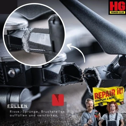 Der HG Power Glue ist ein kraftvoller Reparaturkleber für vielfältige Anwendungen im Haushalt und unterwegs. Die Schweißnaht aus der Flasche besteht aus zwei Komponenten: dem extrem starken Kleber und dem speziellen Granulat. Mit dem Superkleber reparieren Sie nahezu alle Dinge im Haushalt, die Sie sonst neu beschaffen müssten.