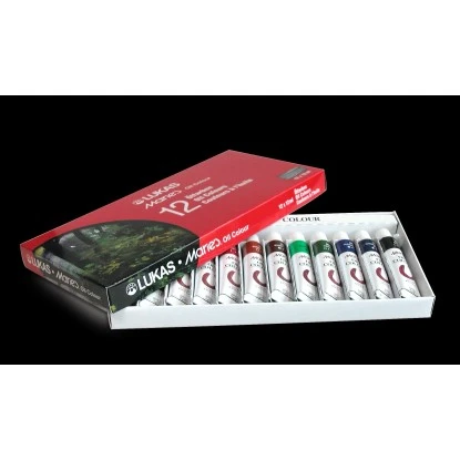 Dieses Einsteiger-Set enthält 12 Tuben à 12 ml in den Farben: Titanweiß, Zitronengelb (Primär-Gelb), Kadmiumgelb hell (imit.), Kadmiumrot (imit.), Magenta (Primär-Rot), Cyan (Primär-Blau), Ultramarinblau, Chromoxidgrün feurig (Phthalo), Lichter Ocker, Terra di Siena gebrannt, Vandyckbraun, Elfenbeinschwarz. Die Farben sind problemlos mit allen anderen erstklassigen Lukas Ölfarbensortimenten 1862 OIL, STUDIO OIL und Berlin OIL, sowie mit Lukas Malmitteln für die Ölmalerei, mischbar.
