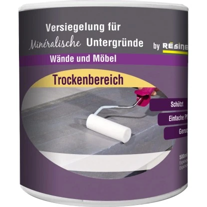 Resinence Versiegelung für Beton Minéral ist eine geruchlose 1-Komponenten-Versiegelung auf Wasserbasis. Sie schützt die Oberfläche des Beton vor eintretendem Wasser und vermeidet unschöne Kratz- und Stoßspuren. Geeignet für den Trockenbereich. Nicht auf Fußböden oder Duschen verwendbar. Die Versiegelung ist gerucharm und mit Raumluftemmision A+ ausgezeichnet. Nutzen Sie beim Versiegeln Ihres Beton am besten eine Schaumstoff-Flockrolle für ein optimales Ergebnis.