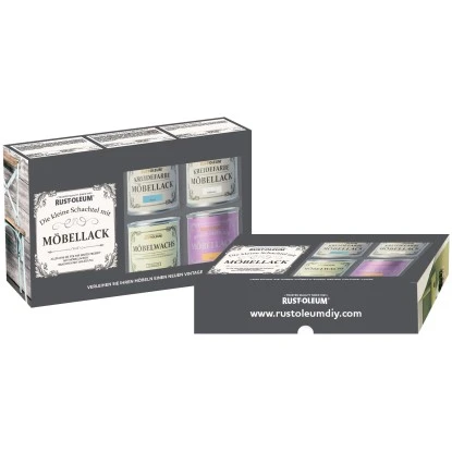 Die kleine Schachtel mit Möbellack von Rust-Oleum bietet alles, um ein angegrautes Möbelstück in Ihr eigenes Meisterwerk zu verwandeln. Mit 2 Farbtönen unseres Kreidefarbe Möbellacks, dem eleganten Metallic Öberfläche Möbellack in Gold und unserem klaren Finish-Wachs bietet dieses Set alle Materialien für angehende Möbel – Upcycler, die mit ihrem ersten kreativen Restaurationsprojekt beginnen möchten.