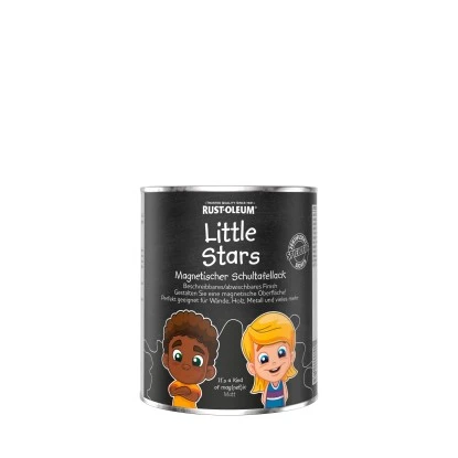 Mit dem Little Stars magnetischen Schultafellack wird eine robuste und kratzfeste Tafeloberfläche erzeugt, die mit Kreide beschrieben und danach wieder abgewischt werden kann.Die Farbe kann auf einer Vielzahl von Oberflächen wie Holz, Wänden, Metall und Glas aufgetragen werden und die Oberfläche ist darüber hinaus nach dem Trocknen auch magnetisch.