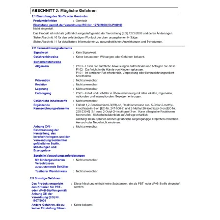 | Verbrauch pro m² in ml | 14 m²/l |