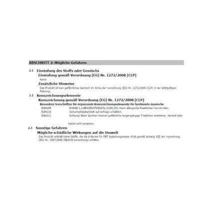 | Für Allergiker auf Isothiazolinone geeignet | Nicht geeignet |