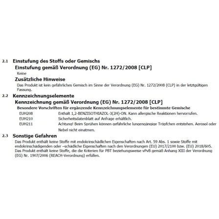| Für Allergiker auf Isothiazolinone geeignet | Nicht geeignet |